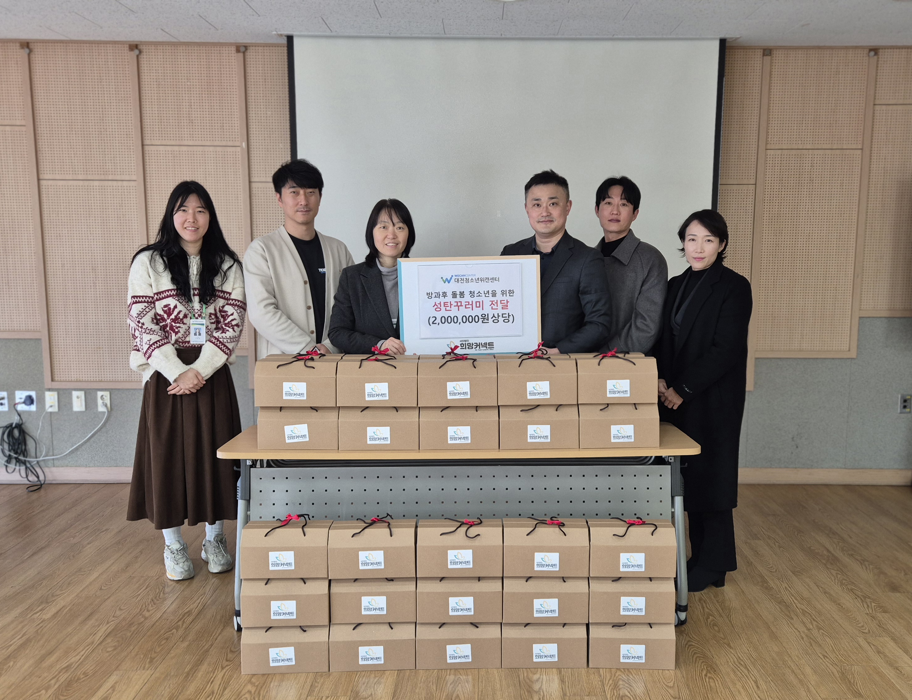 대전청소년위캔센터 협력…영양제·간식 등 실용 물품으로 구성 성탄 선물 전달식(왼쪽부터 대전청소년위캔센터 이윤경 간사, 이정훈팀장, 조정현 센터장, 희망커넥트 남상원 대표, 정택우 이사, 박수지 국장) 희망커넥트 제공 공익법인 희망커넥트가 연말을 맞아 방과후 돌봄이 필요한 청소년들에게 희망과 응원이 담긴 특별...
