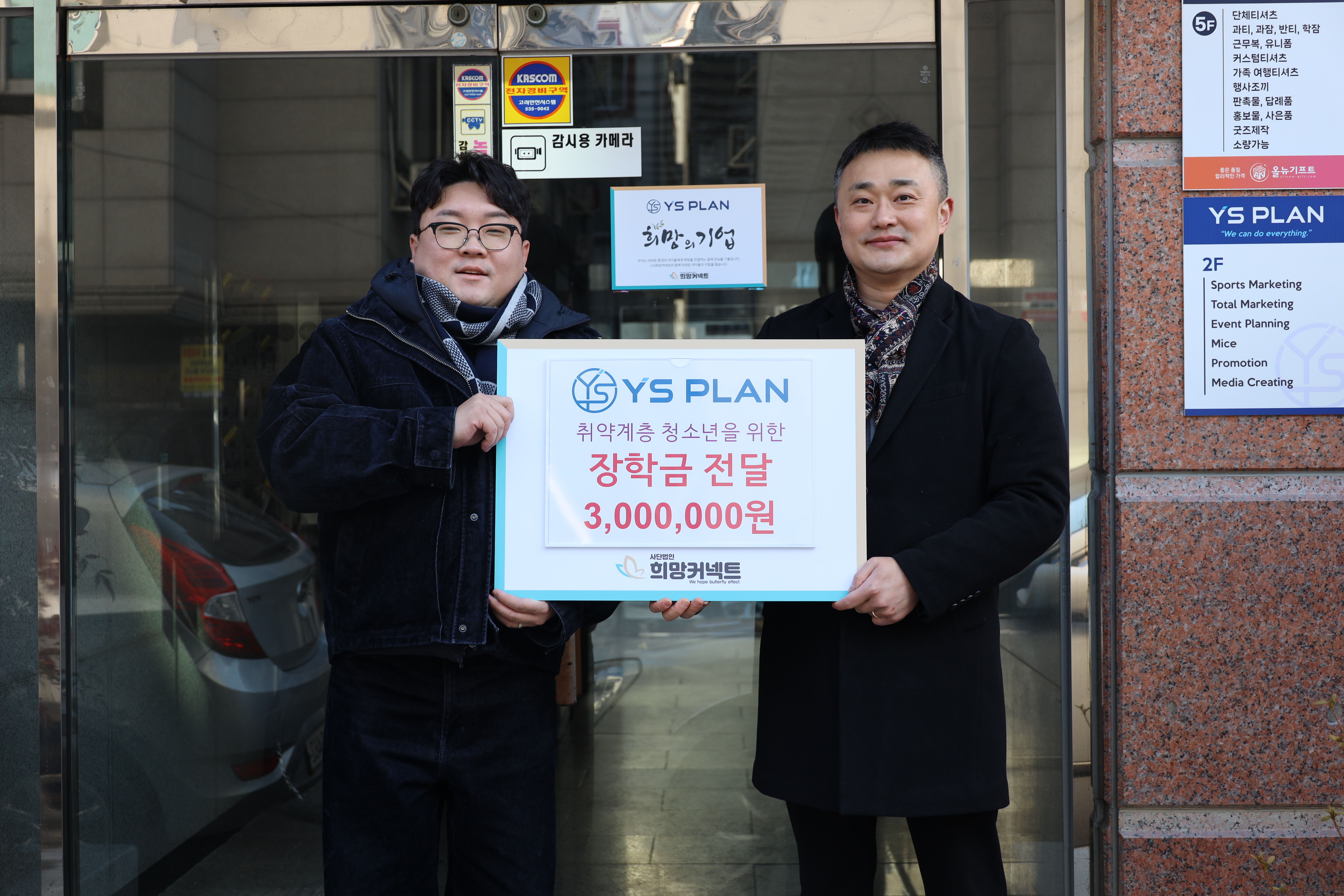종합마케팅 기업 ㈜YSPLAN이 지역사회 취약계층 아동과 청소년들의 건강한 성장을 위해 힘을 보탰다. 사단법인 희망커넥트는 지난 26일 ㈜YSPLAN(대표 안세준)으로부터 취약계층 아동·청소년 지원을 위한 후원금 300만 원을 전달받았다고 밝혔다. 이번 후원금은 경제적 여건으로 인해 교육이나 진로 설계에 어려움을 겪는 청...