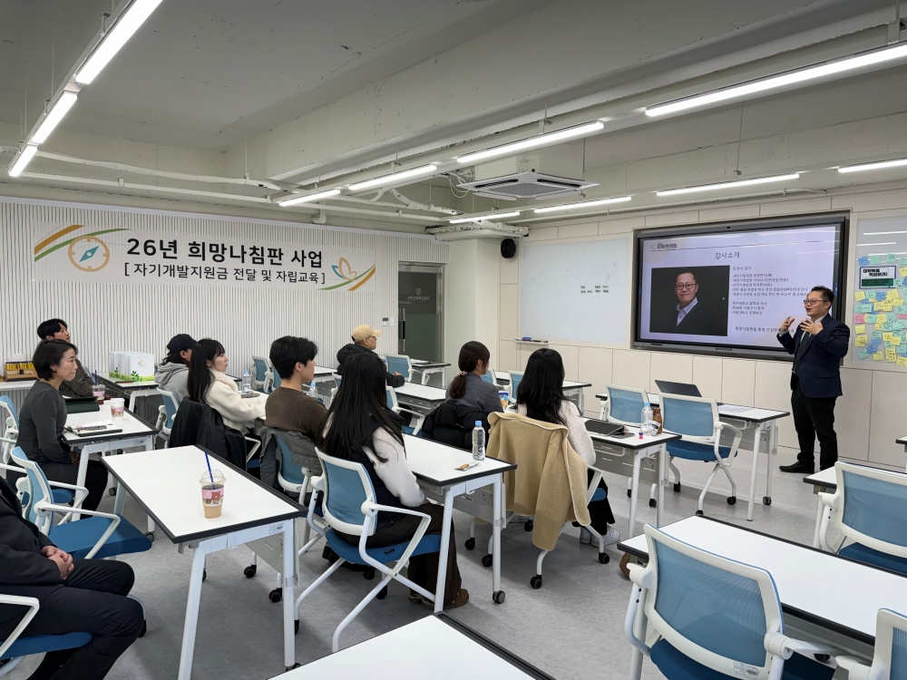 올해는 조금 일찍 시작한 희망나침판 사업이 벌써 3기가 시작 되었습니다.이번에는 대전보건대에서 재학 중인 학생 중 어려운 가정환경에서 자립을 위해 노력하는 학생들을 위해 자기계발지원금 지원 및 자립교육..